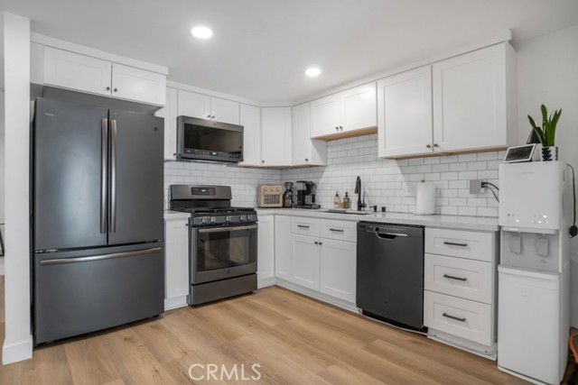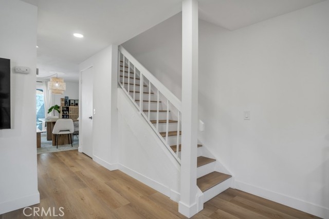 Welcome to this updated two-story townhouse located in the desirable Lake Balboa community. This property offers a private patio and an attached two-car garage with direct access. The first floor features brand new flooring throughout, an open living room, dining area, and a guest bathroom. The kitchen has been upgraded with quartz countertops, subway tile backsplash, and sleek appliances. Upstairs includes two bedrooms, each with its own bathroom and vaulted ceilings. The primary bathroom features a modern vanity, upgraded fixtures, and tile flooring. The gated community offers amenities including a pool, spa, and landscaped common areas. Conveniently located near dining, grocery stores, major freeways, and Ventura Blvd shops and cafes.