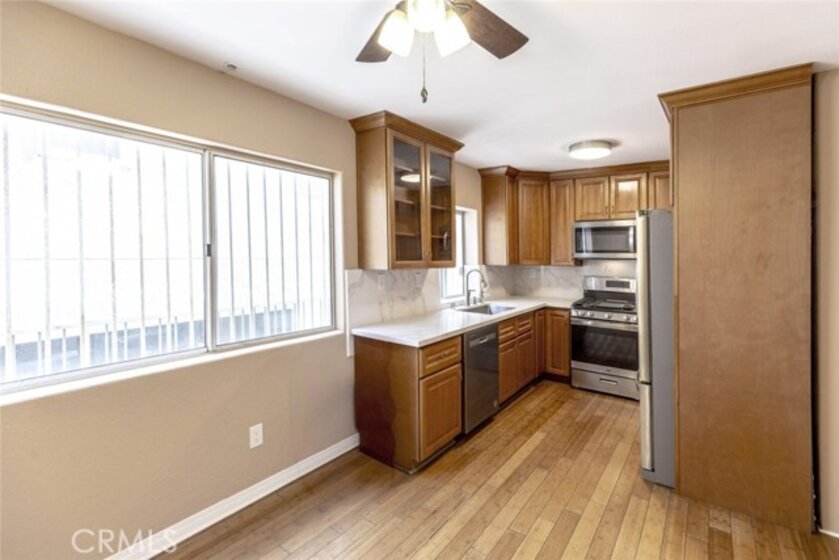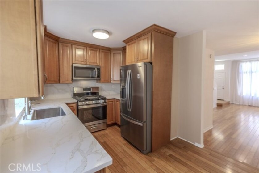 Welcome to 7020 Lennox Ave 3A, a beautifully updated 3 bedroom 3 bath townhouse offering 1,326 sq ft of bright modern living in the heart of Van Nuys. As you enter, you're greeted by an open floor plan filled with natural light, soaring ceilings, recessed lighting, and rich hardwood floors throughout. The spacious living and dining areas flow seamlessly, creating an ideal space for both entertaining and relaxing. The renovated kitchen features granite countertops, stainless steel appliances, and ample cabinetry, designed to impress both everyday cooks and weekend hosts. Downstairs, you'll find a bonus room or office den adjacent to the private 2 car garage, along with laundry hookups and additional storage space. Upstairs, the three generously sized bedrooms offer plenty of closet space and comfort, while all three bathrooms are tastefully finished. Enjoy the perfect balance of comfort and convenience with easy access to major freeways, shopping centers, and local dining. This unit has been beautifully maintained, thoughtfully upgraded, and is ready for you to move right in.