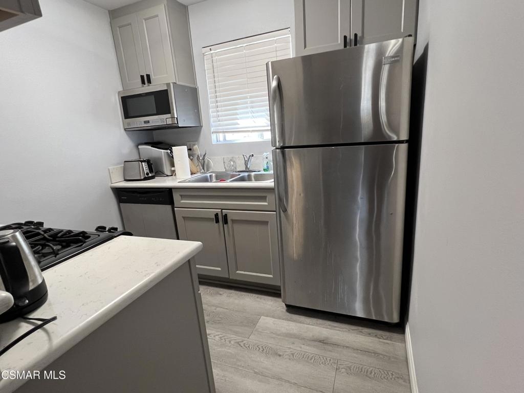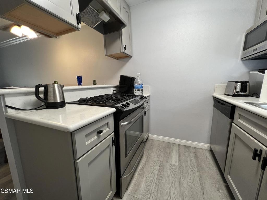 Cozy Single Story 880sf 2 Bed 2 Bath Lake Balboa Adjacent Condo. Fireplace in Recently Painted Living Room with Newer Wood like Flooring and Crown Moldings. Kitchen Features Include Newer Cabinets, Newer Quartz Countertops, Newer Wood like Flooring, Newer Stainless Steel Appliances, and freshly painted. Spacious Primary Bedroom/Bathroom with Newer Granite Countertop and Tile Flooring. Walk-In Closet. Newer Central AC and Heat. Newer Wood like Flooring in Hallway and Second Bedroom. Mirrored Closet Doors. Hallway Full Bathroom with Newer Tile Flooring. Indoor Laundry. Secured Entry Building and Secured Garage. Tandem Parking for [2] Cars. Complex Offers Pool, Spa, and Gym. Lake Balboa where the Centerpiece of the Park is a 27-Acre Lake Offering an Array of Activities like Fishing, Boating, Remote-Control Boating and Picnicking.