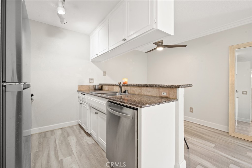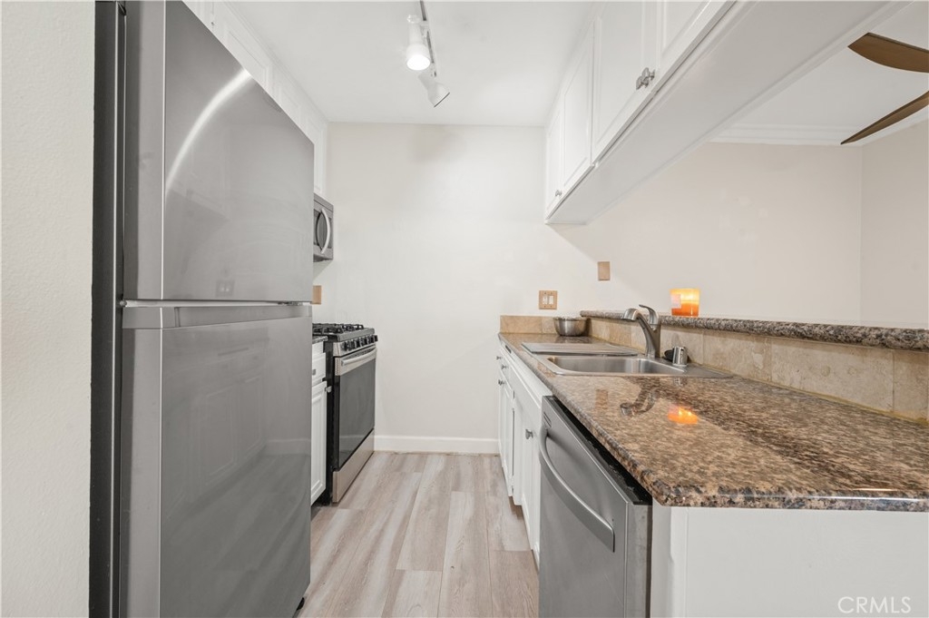 Just moments away from Lake Balboa, a short driving distance to major freeways, and just walking distance to a brand new Vallarta shopping center, this lovely 2 bedroom 2 bathroom condo is perfect for anyone looking for a peaceful living. It consists of a double balcony, where one sits right outside of the warm fireplace lit living room that grants access to a pool view and the other balcony is privately apart of the primary bedroom which has it's own bathroom with a recently renovated floor to ceiling shower and a large walk in closet. The north facing second bedroom absorbs the most natural sunlight in the home and sits across the hall from the finely stacked modern floor to ceiling washer and dryer which is adjacent to the guest bathroom which too has had a major renovation to the bathtub/shower combination. The stainless steel applianced kitchen is equipped with granite countertops, cabinetry, a breakfast bar and an open floor plan concept that allows access back to the living room for entertainment. This home also comes with two tandem underground parking spaces, access to the pool, hot tub, and fitness center with sauna.