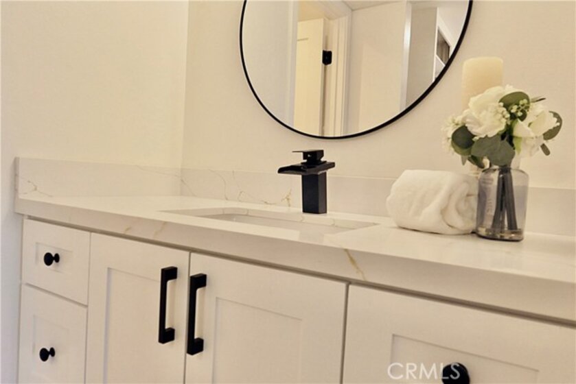 Welcome to this stunning two-story townhouse located in Walnut Gardens. Completely transformed with no detail overlooked. Offering 2 bedrooms, 1.5 bathrooms, and 971 square feet of beautifully reimagined living space, every inch was thoughtfully renovated to create a fresh, elegant home that feels brand new. The kitchen is truly the heart of this home, featuring custom cabinetry, a sleek new Quartz countertop, and a beautifully crafted island with generous drawer storage — perfect for cooking, entertaining, or simply gathering. A new stove complete the space with both form and function. Both bathrooms have been elevated with custom cabinetry, all-new sinks and faucets, delivering a spa-like experience you'll love coming home to. Custom closet doors throughout add a polished, bespoke touch — including a beautifully finished hallway linen closet and elegant new upper doors in the second bedroom. New sliding closet doors in both bedrooms keep everything cohesive and refined. Freshly painted throughout and finished with gorgeous new flooring, this home radiates warmth and style across both levels. Central heating and air keep you comfortable year-round, and two tandem parking spaces add everyday convenience. Beyond your front door, enjoy resort-style community amenities including a sparkling pool and recreation area — perfect for relaxing or entertaining on a larger scale. This townhouse is truly move-in ready. Simply unpack and start living beautifully.