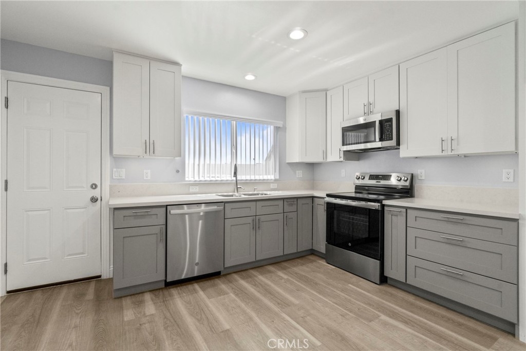 Step into this beautifully remodeled two-story condo! This two-bedroom, one full-bathroom and powder room condo with a balcony has been fully renovated from top to bottom, ensuring a fresh start in a home that feels open and bright. Enjoy peace of mind with upgraded systems including AC, electrical panel, roof, windows, doors, and plumbing—no detail has been overlooked. The kitchen features two-tone shaker cabinets, a sleek stove, dishwasher, and microwave hood. Comfortable living spaces with a layout that offers spacious bedrooms. The closets have built in organizer system with shelves for max storage. The bathrooms have been designed for modern living. Community amenities include a gated community pool, relax in the recreation room, or do your laundry with ease—your building offers a laundry room with three washers and three dryers located just across from the unit. Conveniently located near shopping center, schools, restaurants, public transportation and freeways.