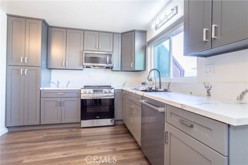 This beautiful two story condominium is located in a great gated community in a central Van Nuys neighborhood, and as soon as you step inside you'll immediately recognize the owner's true "Pride-Of-Ownership." Here are just a few of its many other fine features: + You'll step into a flowing 1,062 square foot floor plan that is in "Move-In-Condition" with recessed lighting and beautiful laminate flooring + The spacious living room is bathed in natural light and has a contemporary light fixture, custom doors and finished wall + The family's cook is going to appreciate the kitchen's newer cabinets, ample quartz counters that were just installed in 2024, durable dual basin stainless steel sink, built-in appliances, breakfast alcove, direct balcony access, and the convenience of the adjoining dining area with its beautiful chandelier + Both bedrooms have roomy closets and custom light fixtures + 1½ bathrooms; The ½ bath is located on the first level for your guests + Energy efficient dual pane windows will help keep your utility bills low and the interior very quiet + Central air & heat was installed in 2024 + Conveniently located community laundry + Dedicated covered parking + You're going to enjoy the community's green belts and sparkling pool + Location has a very high Walk Score® of 80; Meaning it's Very Walkable so most errands can be accomplish on foot + Great location close to school, grocery stores, shopping, restaurants, and major freeways