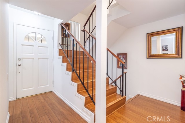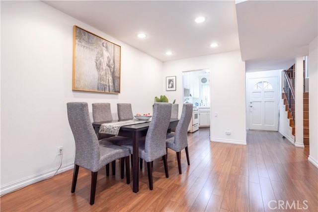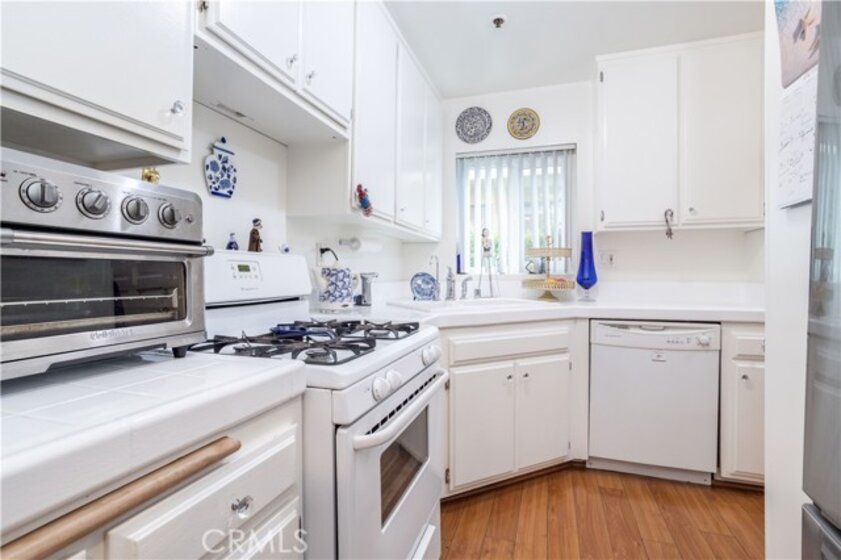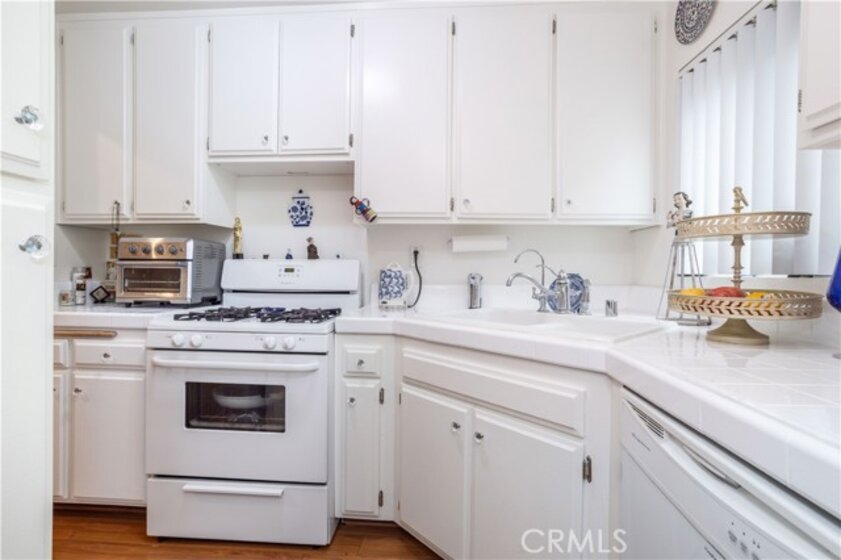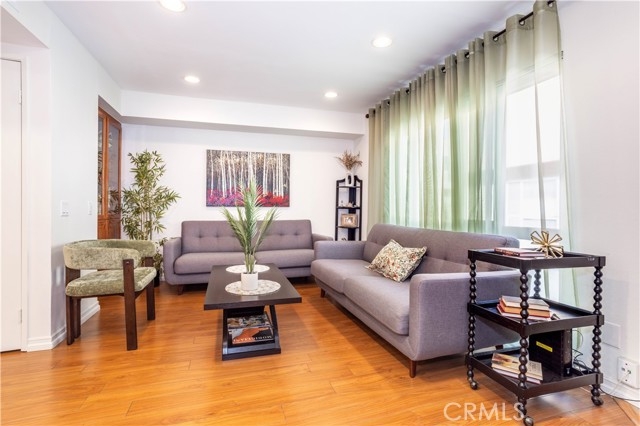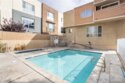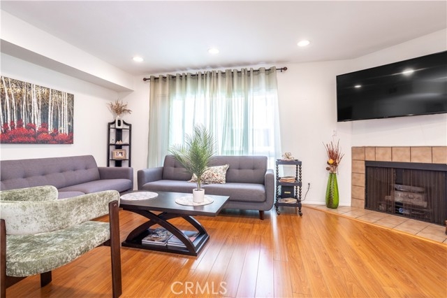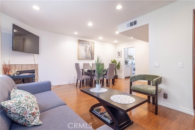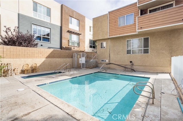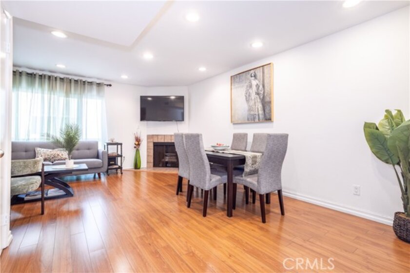 Welcome to this stylish and beautifully maintained townhome, offering resort-style living with a sparkling pool and spa, all within a highly desirable gated community in Van Nuys. This thoughtfully designed residence features two bedrooms and two and a half bathrooms across approximately 1,060 sq. ft. of comfortable living space. On the main level, you’ll appreciate direct access from the private two-car garage, a welcoming living room with a built-in display cabinet, attractive laminate flooring, a cozy gas fireplace, and powder room for your guests. The spacious dining area flows seamlessly into the bright and charming kitchen, which boasts generous cabinetry and counter space — perfect for both everyday living and entertaining. Upstairs, the primary suite is bright and airy, featuring a generous walk-in closet with a stylish barn-style door and an upgraded ensuite bathroom complete with a new vanity, soaking tub, elegant floor-to-ceiling tile, and all new fixtures. The secondary bedroom is equally inviting, offering mirrored closets and access to a nearby hallway bath showcasing a modern stall shower, updated vanity, and contemporary finishes. Additional highlights: optional third designated parking spot, all new vinyl windows, a new roof, laminate flooring throughout, and central heating and air conditioning for year-round comfort. Set within a well-maintained gated community, residents enjoy access to resort-style amenities including a sparkling pool, relaxing spa, and beautifully landscaped common areas. Ideally situated near popular dining, shopping, parks, schools, and with convenient 405 Freeway access, this townhome blends contemporary comfort with an unbeatable location — offering the perfect combination of style, privacy, and convenience.